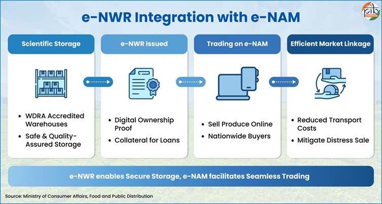 एकीकरण: इलेक्ट्रॉनिक परक्राम्य गोदाम रसीद (e-NWR) प्रणाली को ई-एनएएम के साथ एकीकृत किया गया है।